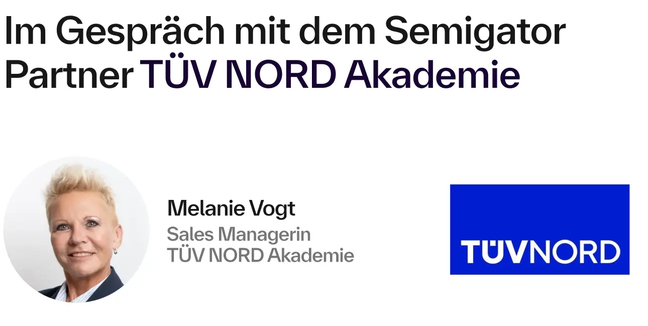 Der Weiterbildungsmarkt verändert sich spürbar. Gemeinsam mit unserem langjährigen Partner TÜV NORD Akademie haben wir bei Semigator über aktuelle Entwicklungen, gefragte Weiterbildungsthemen und zukünftige Kompetenzanforderungen gesprochen – und darüber, wie Unternehmen Weiterbildung heute wirksam gestalten können. Die zahlreichen Weiterbildungsangebote der TÜV NORD Akademie sind im Semigator Katalog eingebunden und zählen zu den gefragtesten Angeboten bei unseren Kunden.